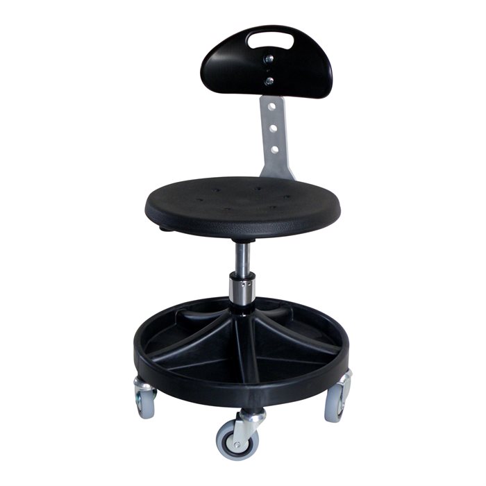 Atara åk- och montörsstolar är rejäla och ergonomiska med smarta lösningar. Dessa är anpassade för dig som har mycket arbete sittande på huk eller behöver böja dig ner. Stolens underrede har fem praktiska fack för förvaring av det du behöver under arbetsdagen. Du sitter bekvämt på den runda sitsen i slitstarkt PU-skum som har steglös justering av sitthöjden. Här även utrustad med ett ergonomiskt ryggstöd som ger en än högre komfort. Åkstolen har även slitstarka hjul som lämpar sig för så väl krävande verkstadsgolv som för golv inom offentligverksamhet.