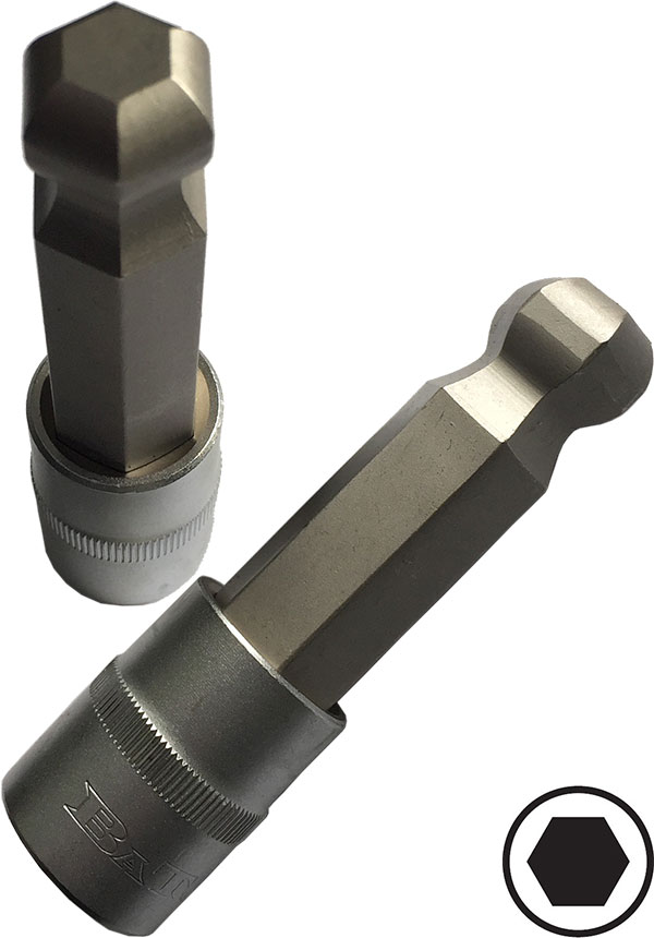 Bitshylsa i långt utförande ½” Insex med räfflat grepp och kula. Tillverkade av kromvanadinstål. Förkromade och slipade. -