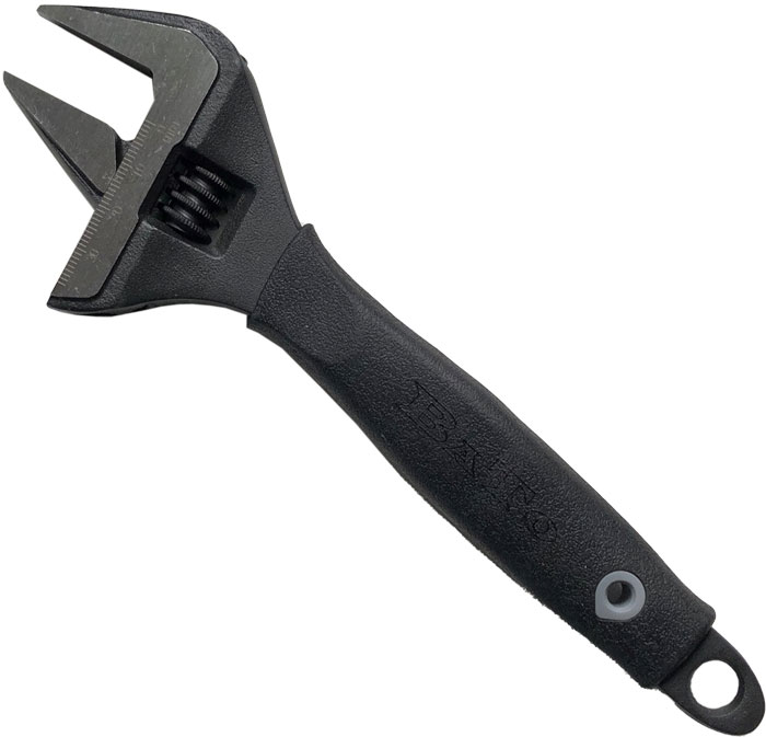 Skiftnyckel med extra stor gripvidd och ergonomiskt tvåkomponentshandtag. Tillverkad av kromvanadinstål, fosfaterad. 15° käftvinkel. Standard enl. DIN 3117-1988, ISO 6787-1982. Upphängningshål i skaftändan. -