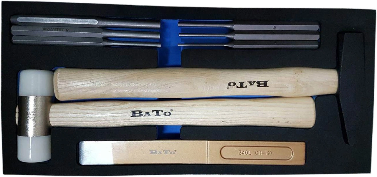 Hammar och dornsats 9-delar, EVA 1/3. Verktygsinsatsen innehåller: Verkstadshammare 500g Studsfrihammare med nylonslag Ø35mm Drivdorn stl. 3-4-5-6-8-10mm Flatmejsel 230x25mm.