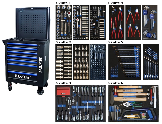 BATO har ett brett verktygsprogram i eget varumärke som omfattar arbetsbelysning, bitssatser, bits, tänger, hylsnyckelsatser, hylsstiftsatser, krafthylssatser, spännband, luftverktyg, momentnycklar, blocknycklar, ringspärrnycklar/satser, domkrafter, verktygsvagnar och mycket mer.